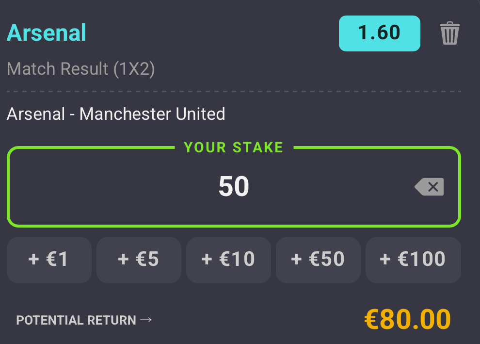 - Lyö koko summa Arsenalin voitolle (1X2)