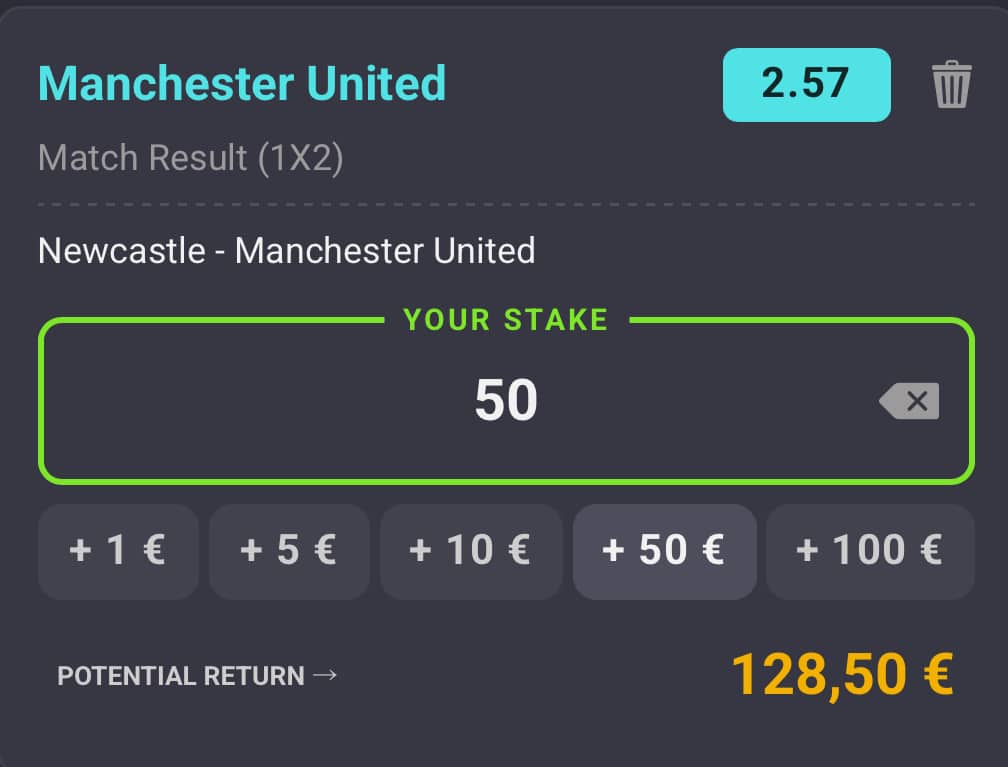 - Lyö koko summa Man Unitedin voitolle (1X2)