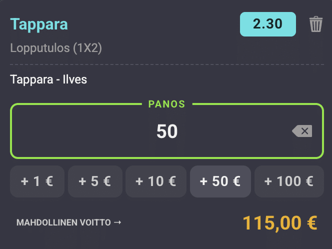 - Jos Tappara voittaa, sinä voitat 115 euroa!